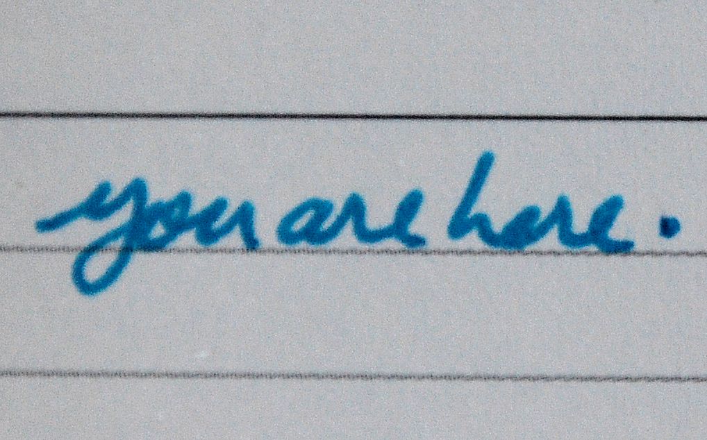 He wrote that on the side page of his calendar. “You are here.” Actually, the period more like a middle dot.