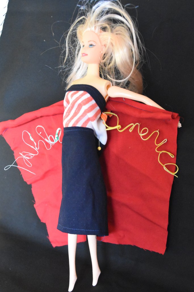 and then, photos of the “Recreate a dress from Crowded Fire’s The Taming from items in your house” for the scavenger hunt items…