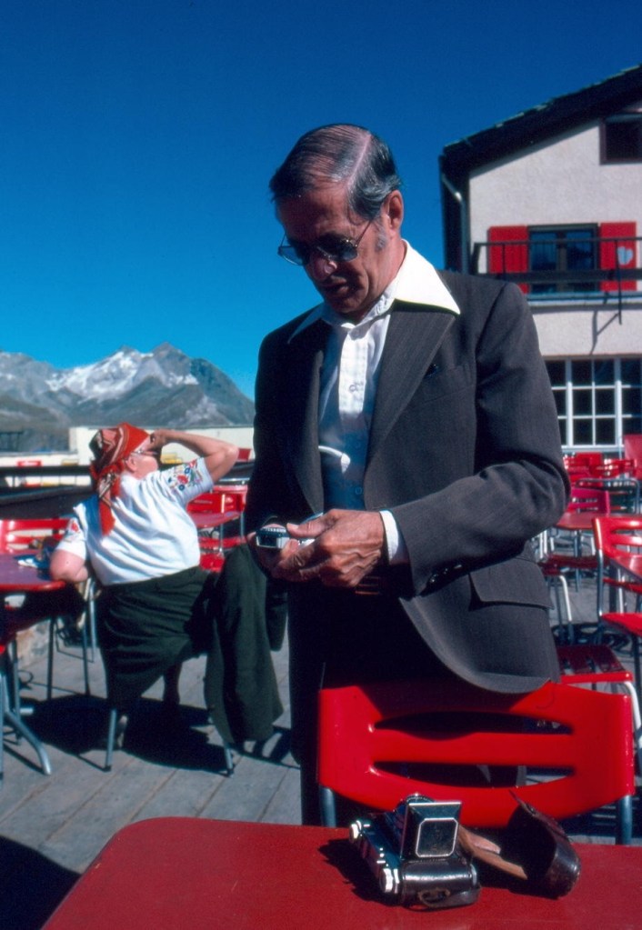 I have a photo of my father using his camera (the light meter actually, but the camera and its leather case are visible) in 1980. There may be a few slides he captured in the couple of years that followed, but the camera was never used after he died, in 1983. This project completes the camera’s 75th anniversary. It has been instrumental to my family’s history, maintained our memories as we watched slides on Friday nights in our living room. Here’s to time passing!