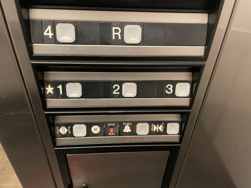 Fortunately they thought of putting a star next to the number 1. Too often I see, especially in buildings with a basement, an assortment of letters the user has to guess… Sometimes there’s LL or B for the basement, and G for Ground Floor which could just be 1, because this one user (me) keeps thinking it’s for Garage while LL suggests Lobby…