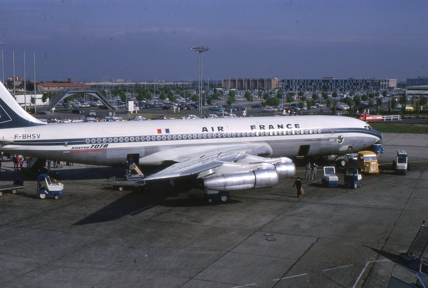 The photo is not even framed properly. I would have discarded the old slide from my father’s boxes that I tasked myself with sorting out. Many of these slides were the source of our family’s entertainment, back when the only channel on black-and-white TV had the hockey game on Saturday nights, and none of us cared for it. This photo of an Air France Boeing 707, apparently taken at Orly airport, was part of the family show after my parents came back from their trip to France in the Spring of 1964. Many of the photos show street scenes, and sometimes there’s my mother sitting on a rented chair in the Jardin des Tuileries (I’m making this up, I don’t remember what jardins they were, but I remember she mentioned having to pay to sit on the chair). It must be Sunday, and they might have attended Sunday Mass at Notre-Dame, because she’s wearing white gloves… Otherwise, my father was interested in documenting his trip with his group of professors, and we saw a hydroelectric …